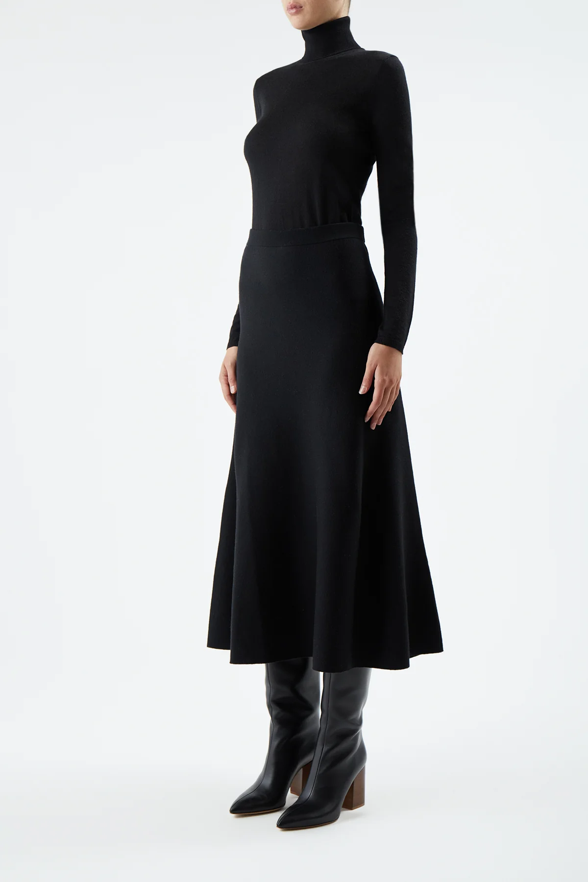 Costa Knit Turtleneck in Black Cashmere Silk