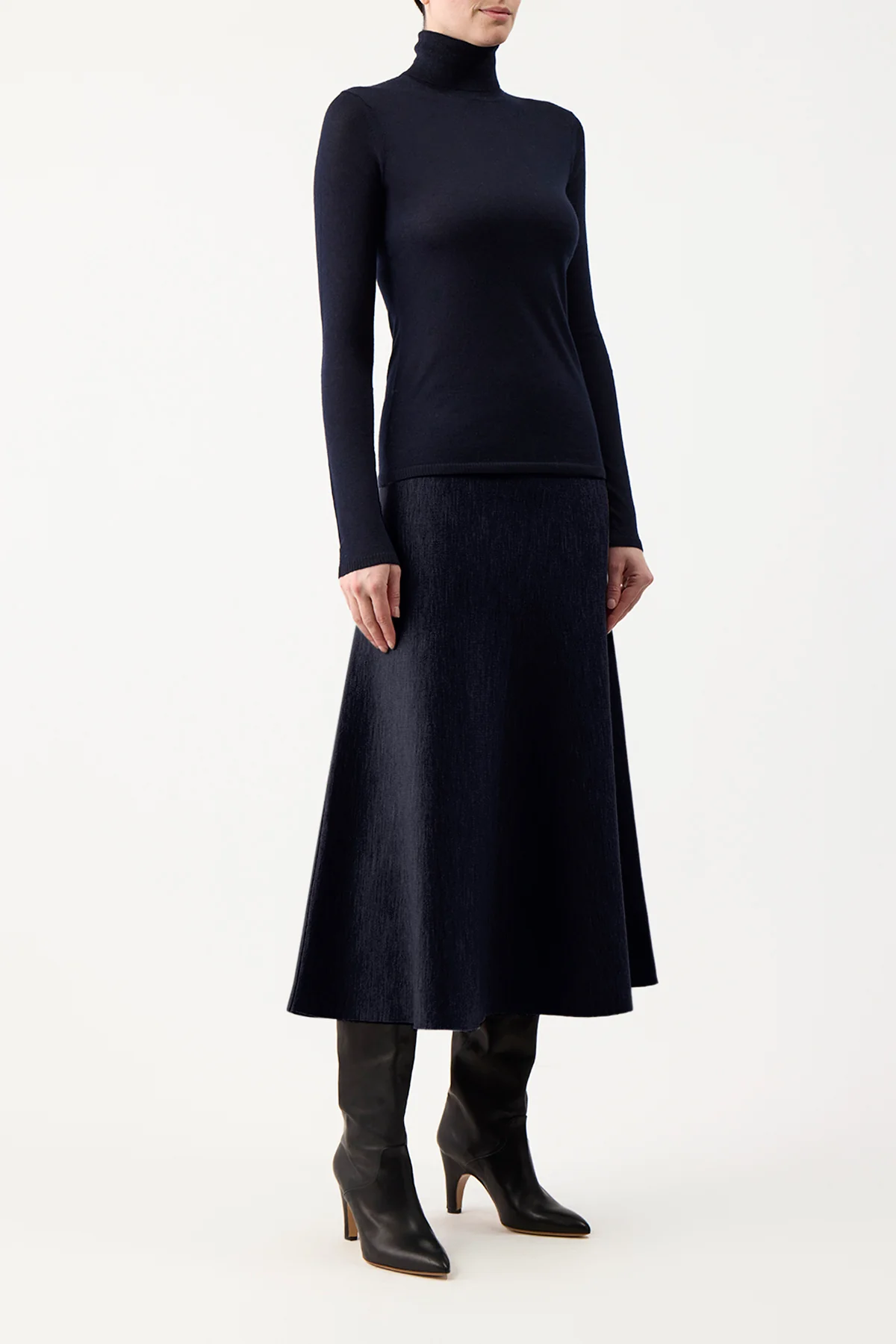 Costa Knit Turtleneck in Dark Navy Cashmere Silk