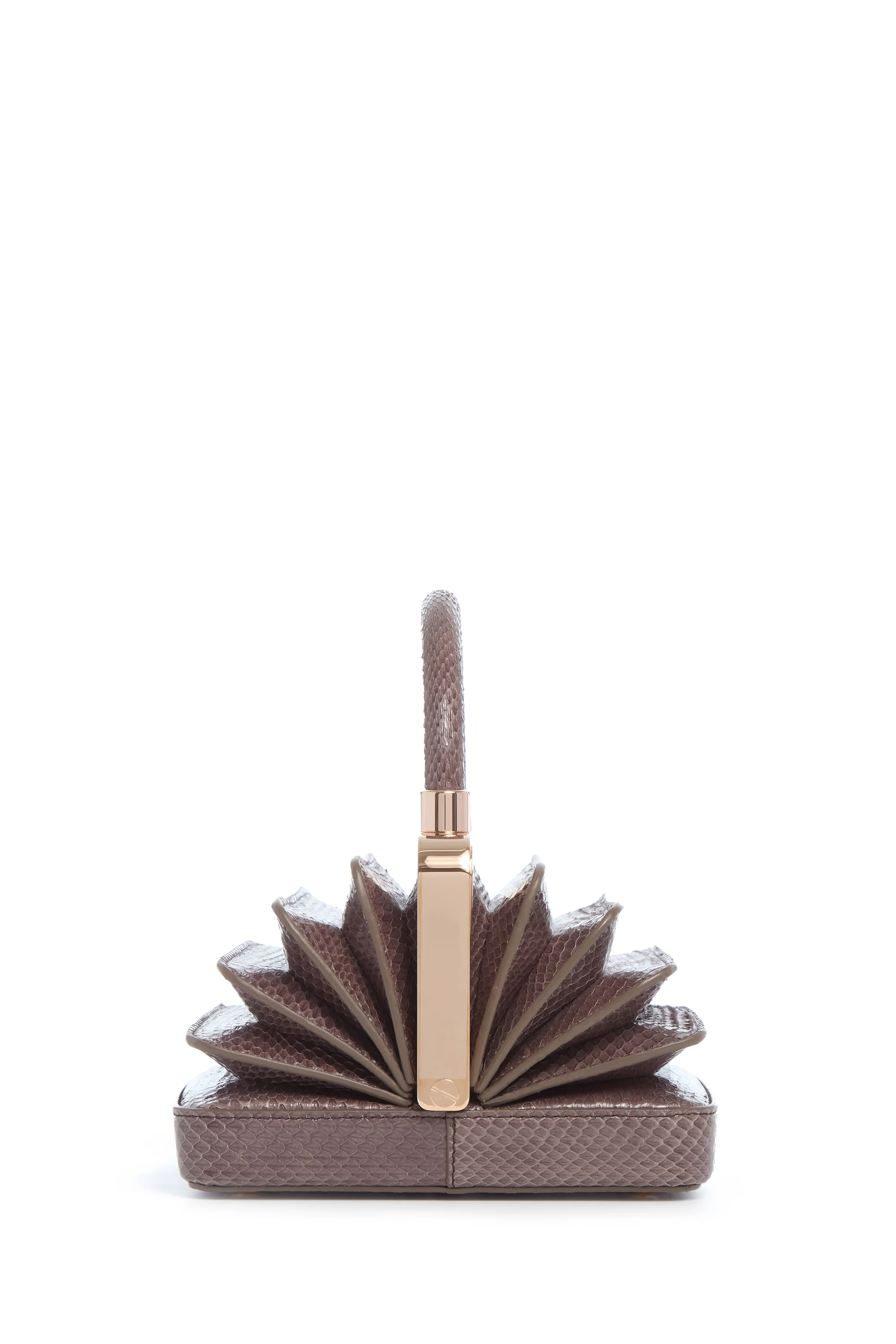 The Diana Bag is named after singer, actress and record producer Diana Ross. A structured top handle with a shape reminiscent of the bellows of an accordion, the Diana is crafted from 100% Elaphe.