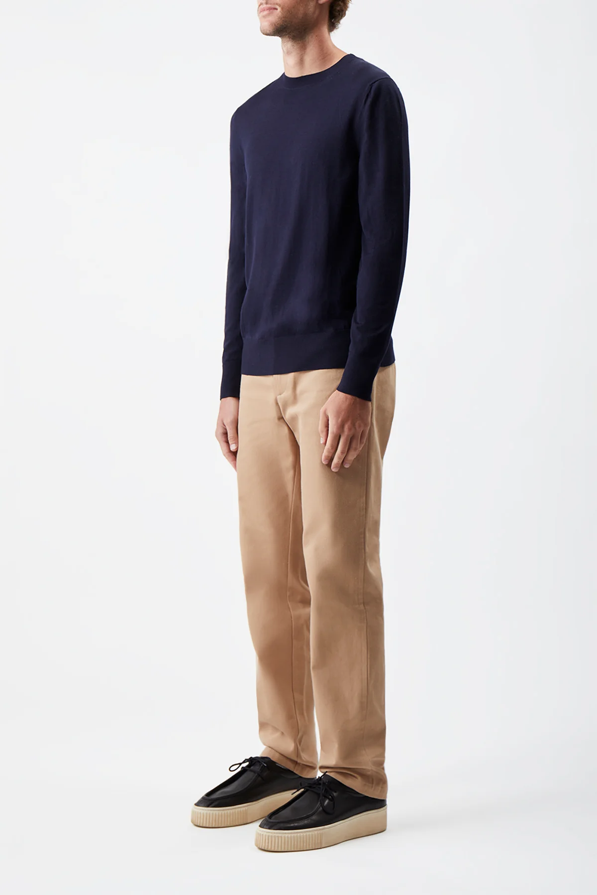 The Palco Crewneck is knit in a superfine Italian merino, the yarn looks clean and crisp while also having a soft and luxurious hand feel. The sweater is masterfully knit on the finest knitting machine available, which you can be seen by how small each individual stitch is. It is then hand linked together, stitch by stitch. The fit is classic and can become a staple in every man's wardrobe.